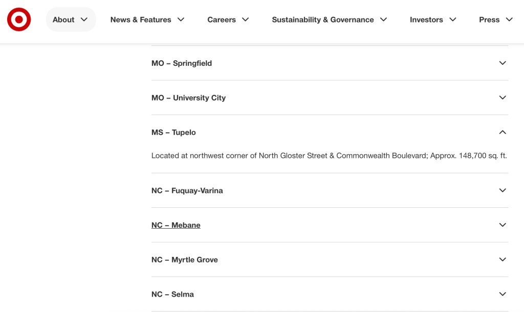 It’s been reported locally that Target is coming to Tupelo. This is the first time I’ve seen it on the Target website even though I haven’t checked the site in some time.