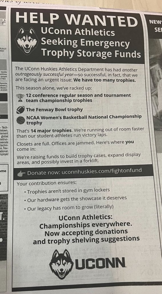Clever fundraising appeal Craig Ford sports July 3, 2025July 3, 2025 1 Minute In the Hartford Courant on July 3, 2025 (From Darren Rovell on X) Share this: Share on X (Opens in new window) X Share on Facebook (Opens in new window) Facebook Like Loading... Related Published by Craig Ford View all posts by Craig Ford Published July 3, 2025July 3, 2025