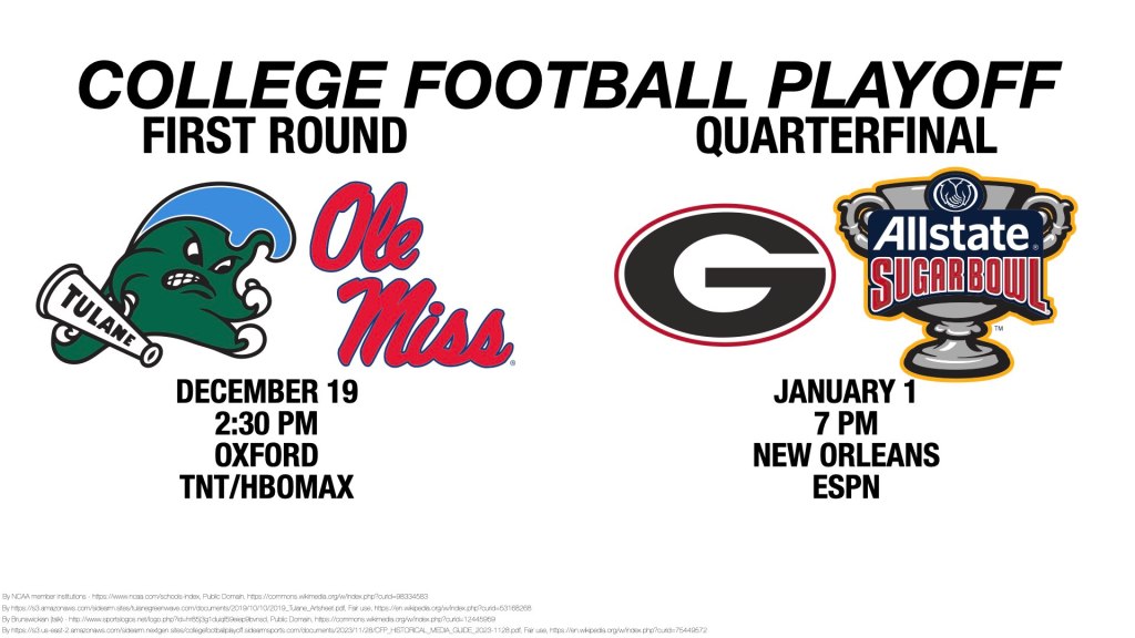 The playoff plan Craig Ford sports December 7, 2025 1 Minute Winner of the first round game between Tulane and Ole Miss will play Georgia on New Year’s Day. Share this: Share on X (Opens in new window) X Share on Facebook (Opens in new window) Facebook Like Loading... Related Published by Craig Ford View all posts by Craig Ford Published December 7, 2025
