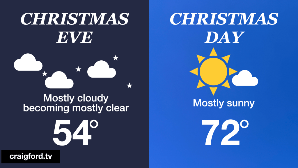 The National Weather Service has issued its first forecast for Christmas. Above is the forecast for Tupelo with only slight differences for other parts of Northeast Mississippi.